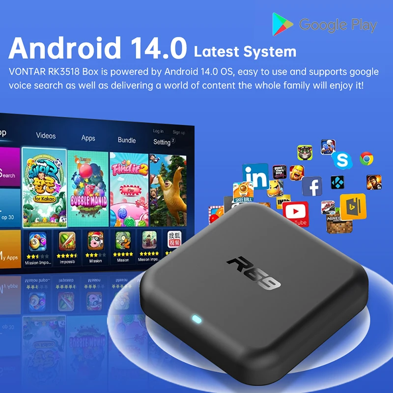2025 Global Edition R69 Android 14 TV Box Wifi 6 with Bluetooth 5.0 Google YouTube Media Player Set-Top Box Support Voice remote
